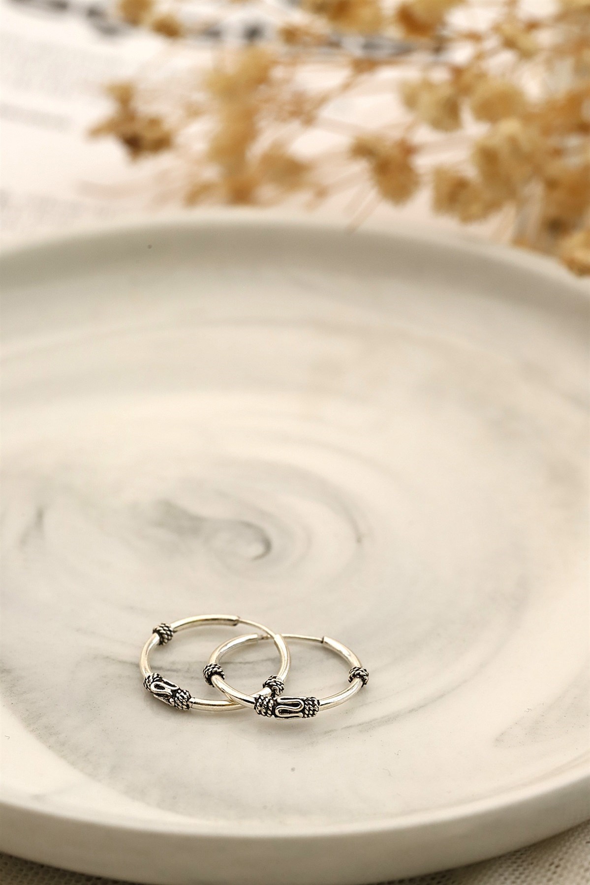 RODYUM KAPLAMA OKSİT İŞLEMELİ İNCE HALKA GÜMÜŞ KÜPE