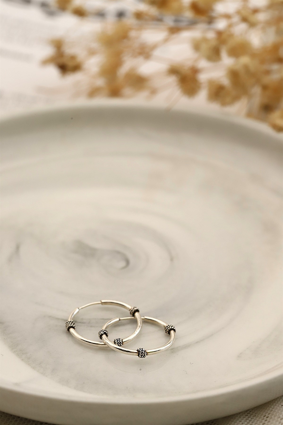 RODYUM KAPLAMA OKSİT İŞLEMELİ İNCE HALKA GÜMÜŞ KÜPE